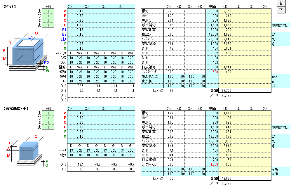| 3.ピット・雑基礎 | ピット(桝), 独立基礎, 受水槽基礎 |